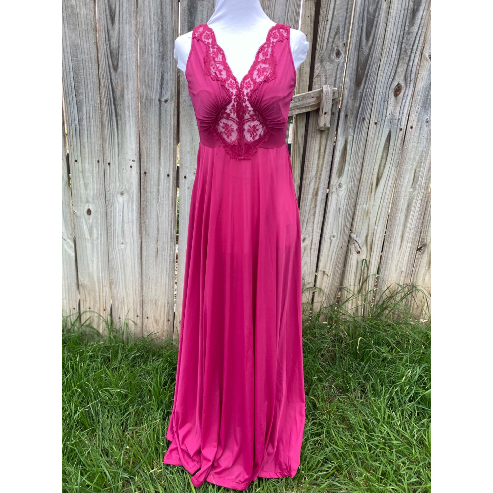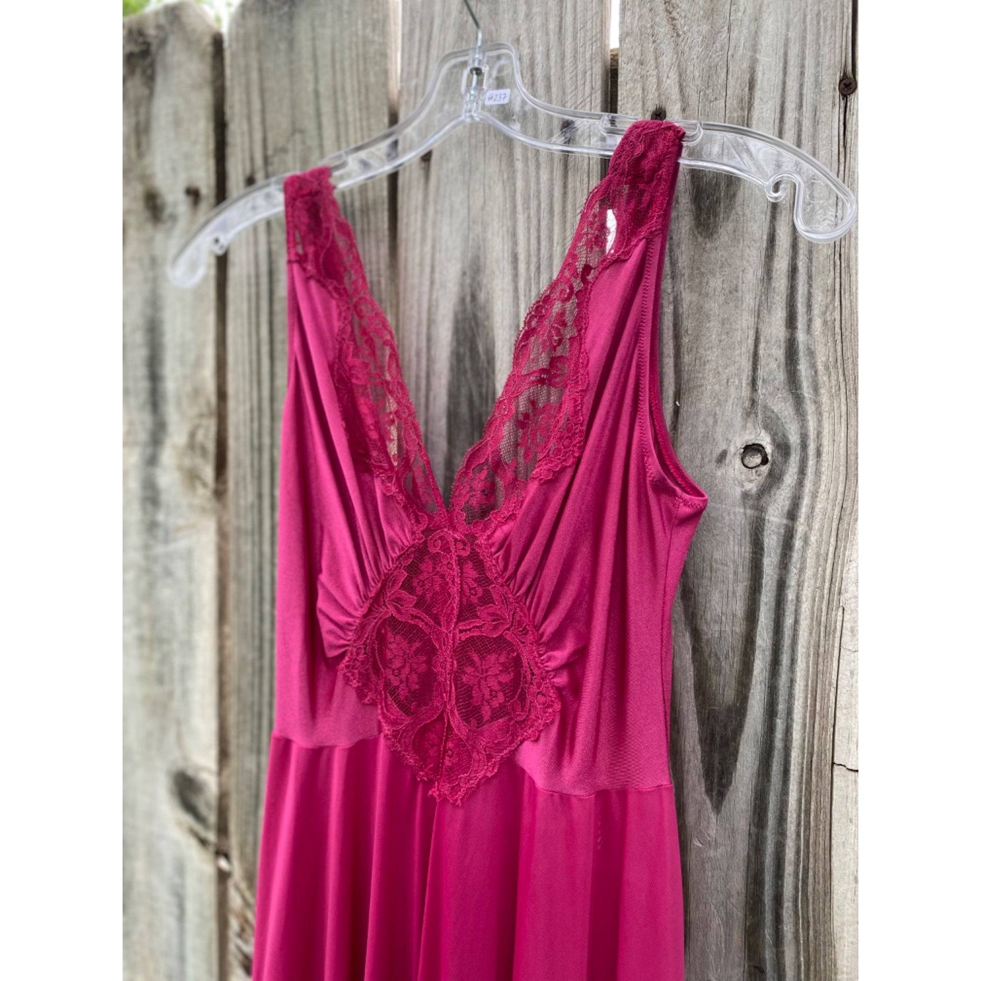 70’s Vintage Fuchsia Pink Lace Maxi Slip Dress
