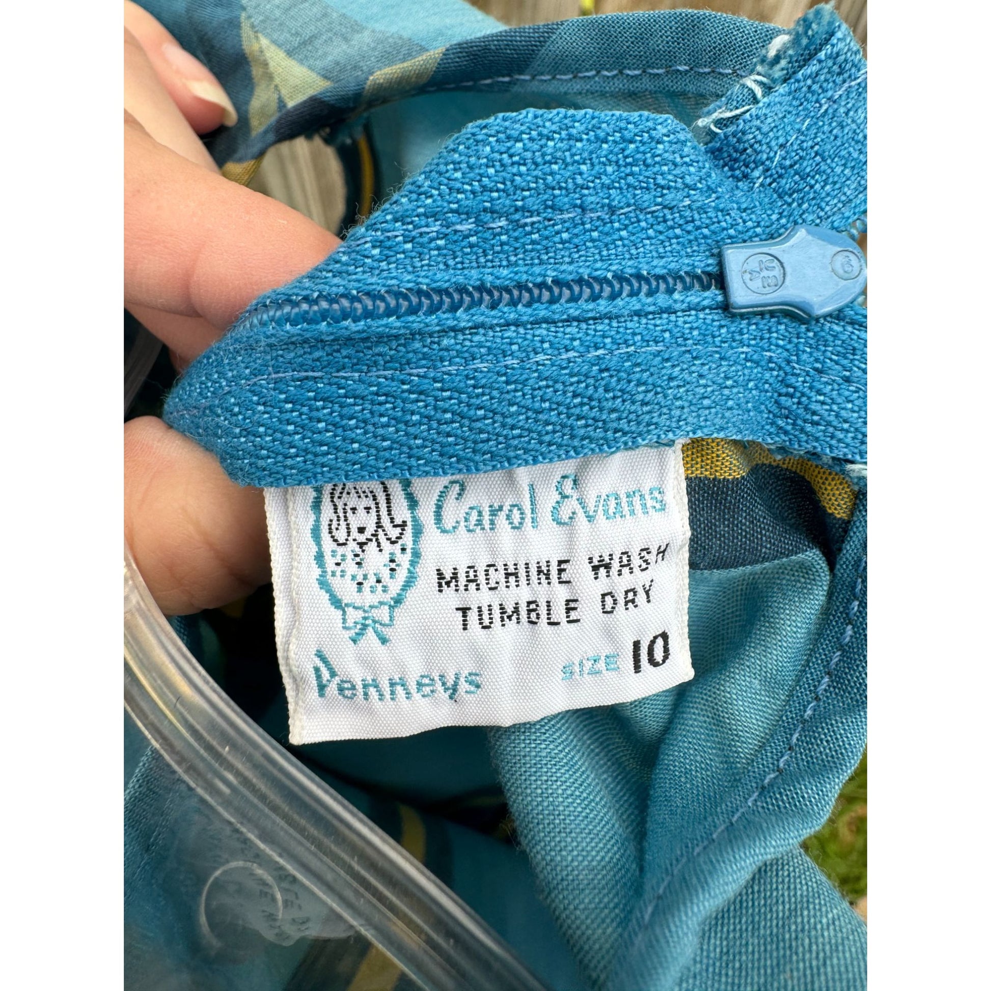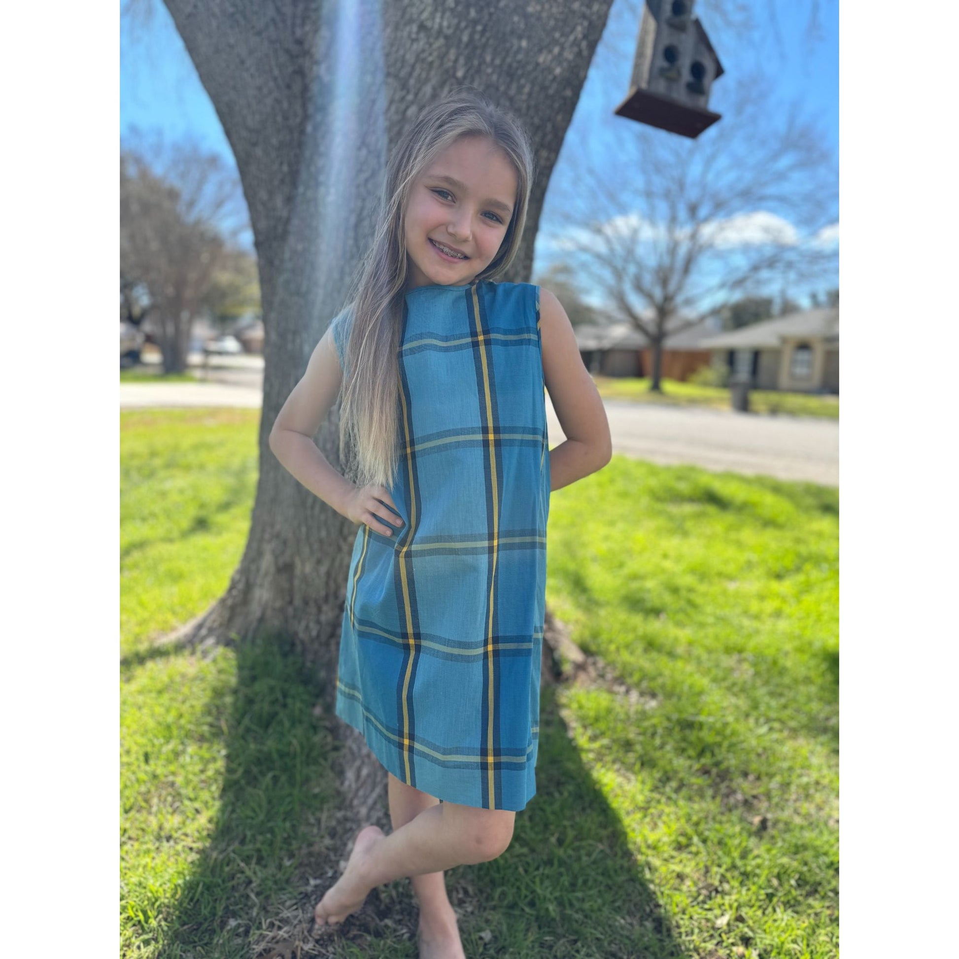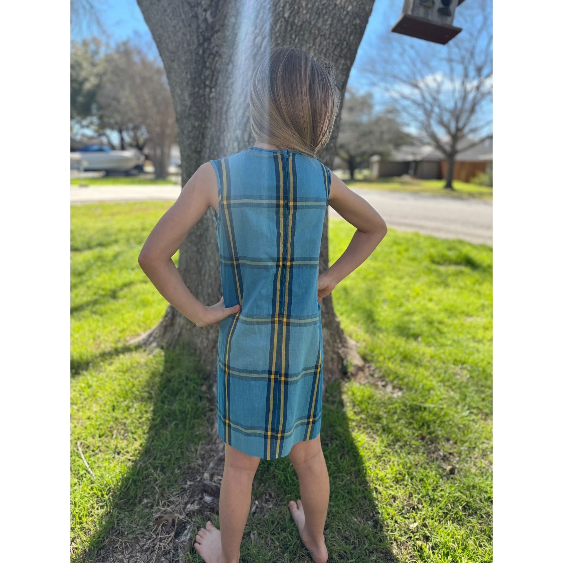 70's Carol Evans Pennys Girl's Blue Plaid Sleeveless Shift Dress 10