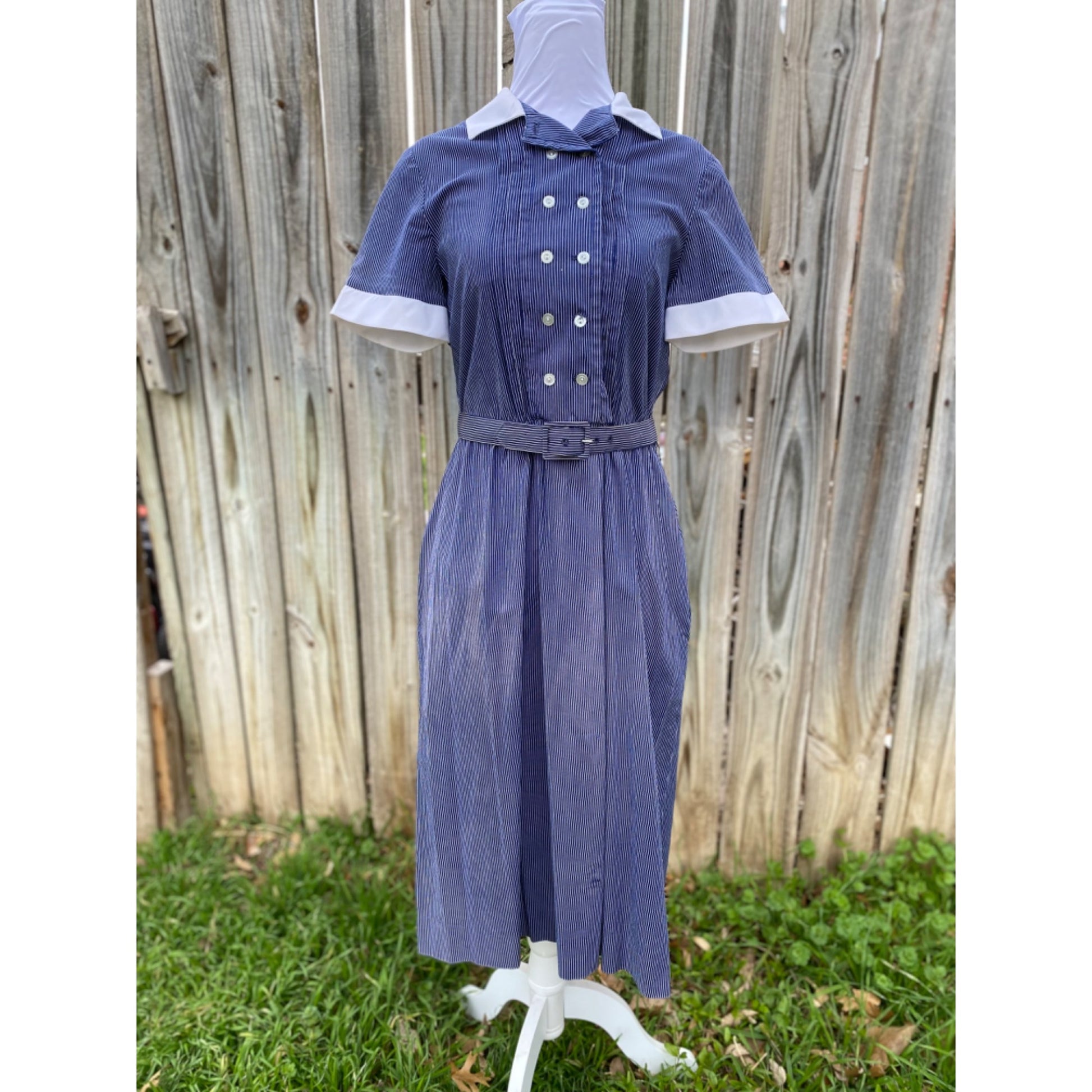 70's David Warren Union Made Blue Pinstripe Dress & Belt Set