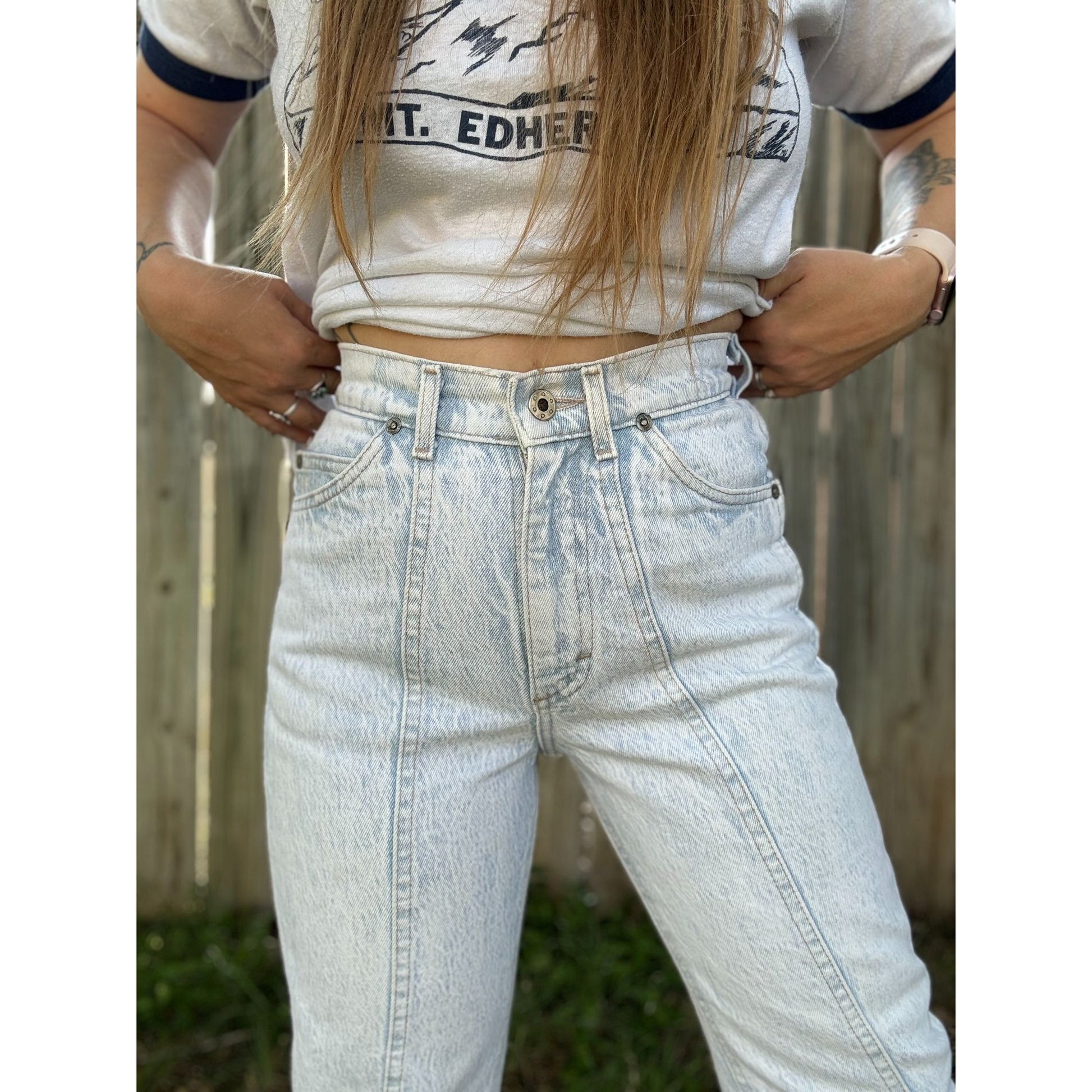 Vintage 80's Lee Women's Light Wash High Waisted Denim Jeans Size 5