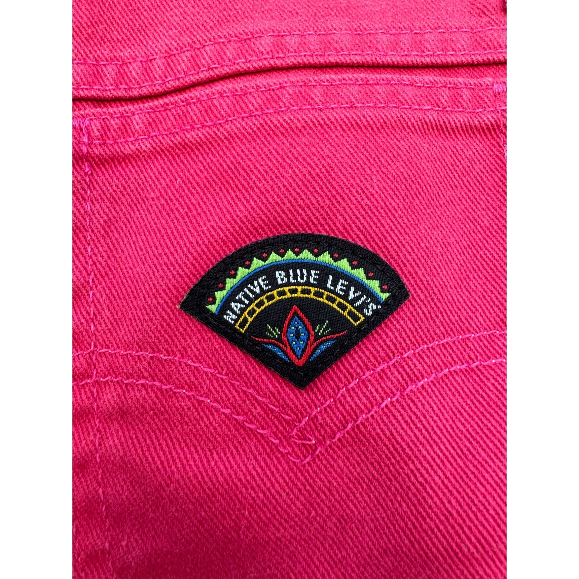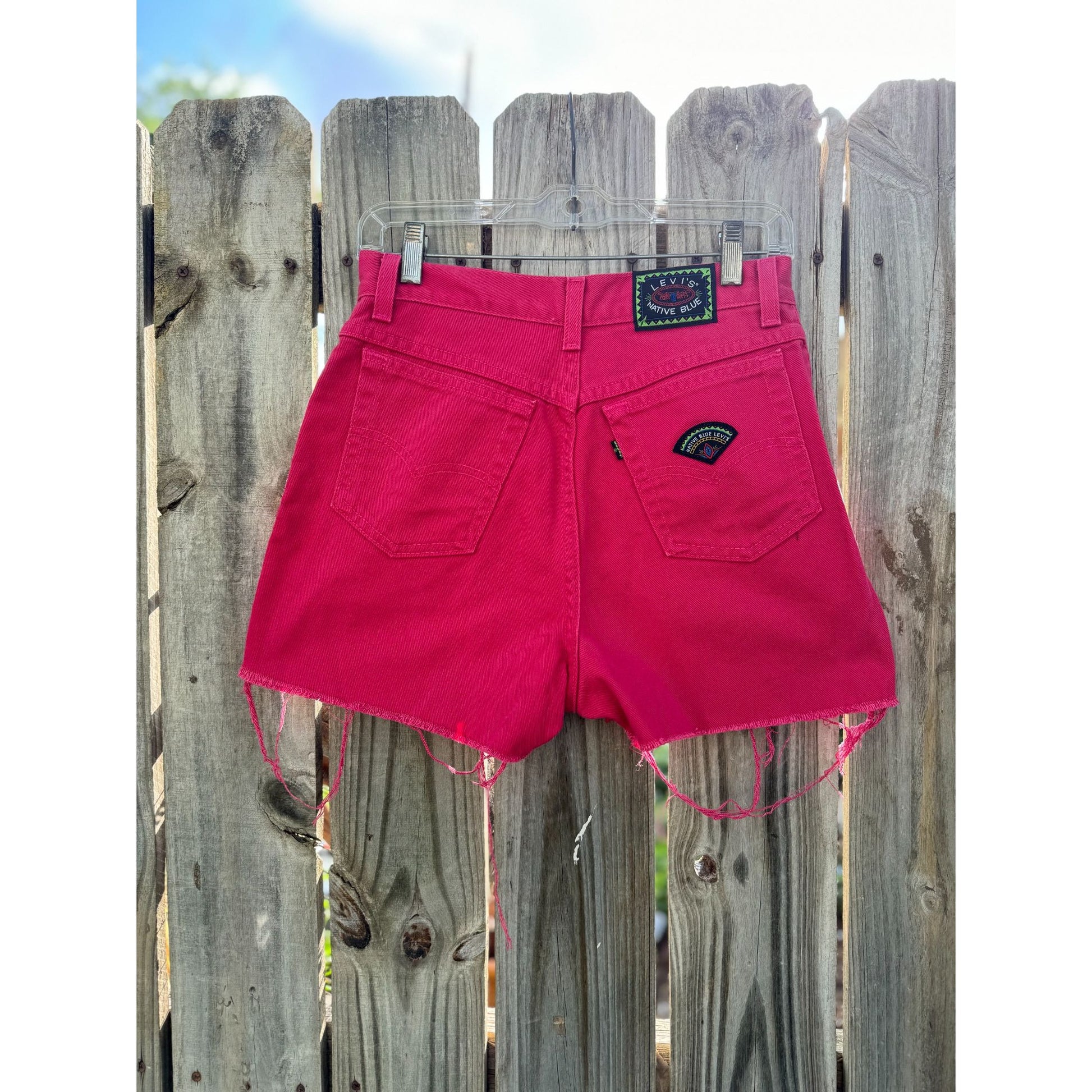 Vintage 80's Levi's Native Blue Hot Pink Cut Off Raw Hem Denim Jean Shorts Size 9