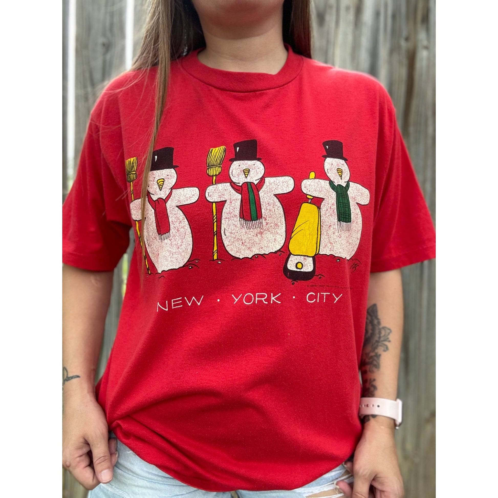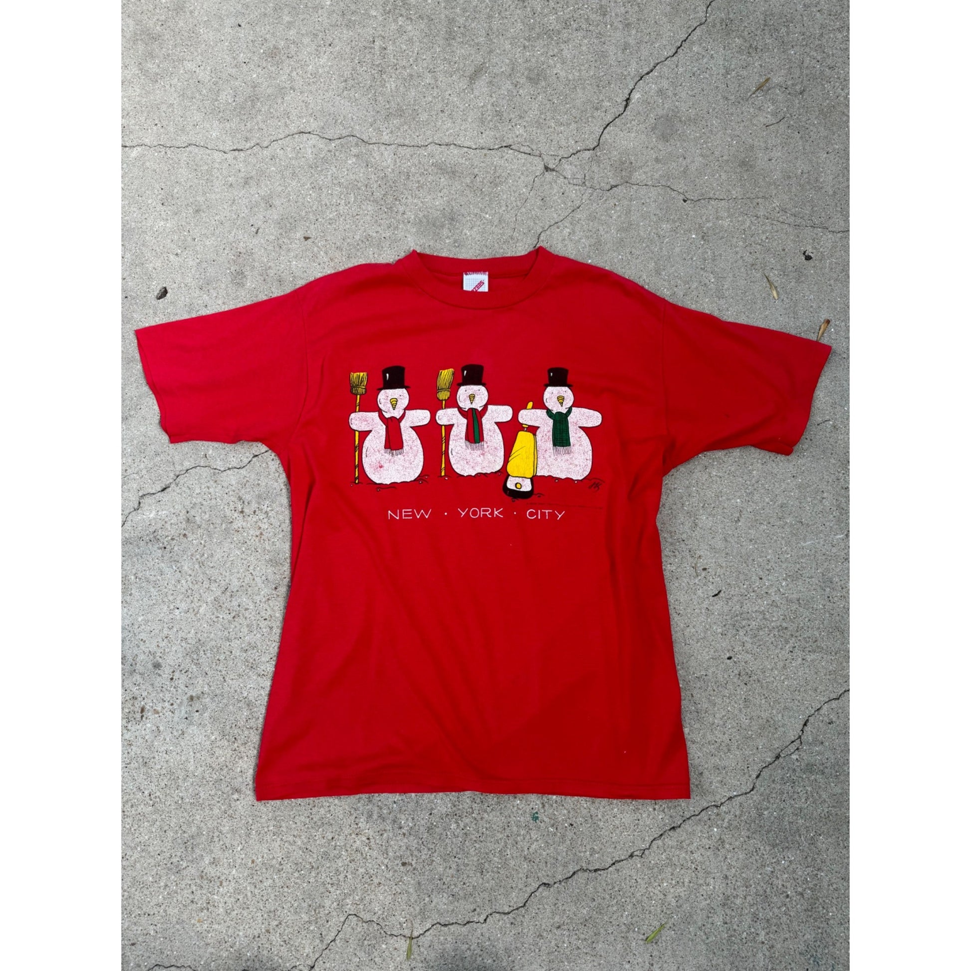80's New York City Snowman Christmas Single Stitch Tee T-Shirt Large