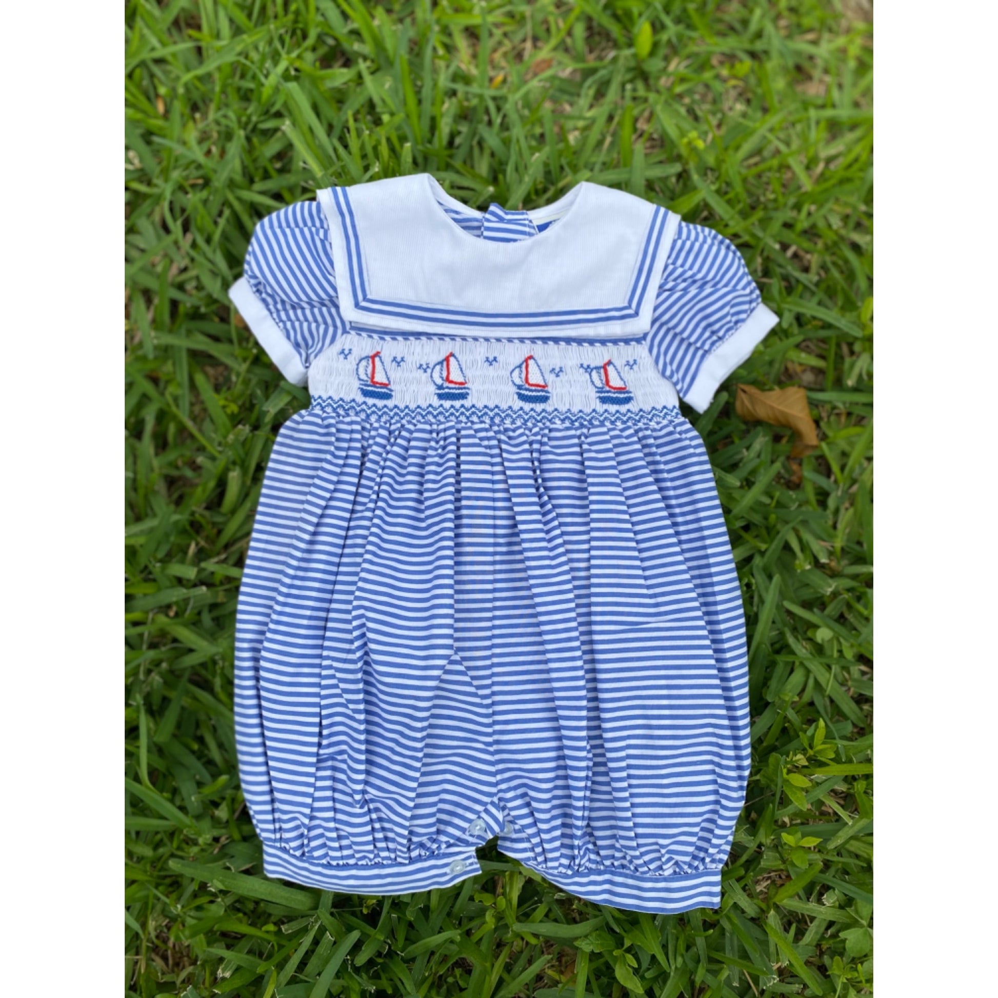 90’s Carriage Boutiques Smocked Nautical Striped Romper 9M