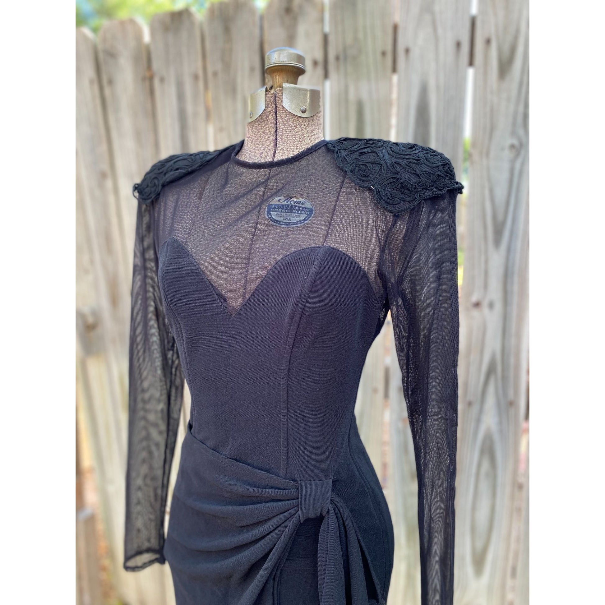 90's Vintage Betsy & Adam Sweetheart Illusion Bodycon Black Dress Size 5/6