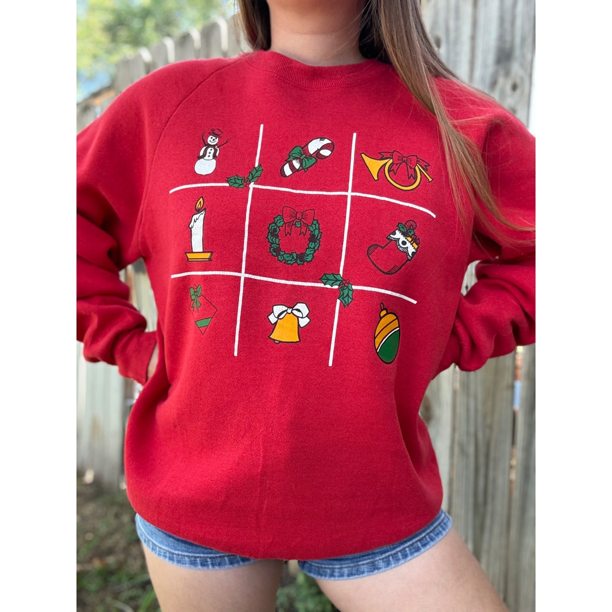 90's Christmas Tic-tac-toe Holiday Graphic Sweatshirt Large