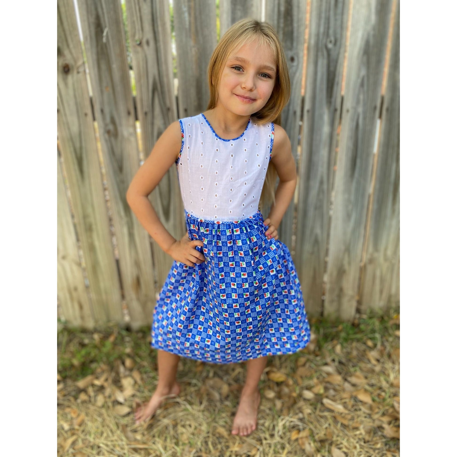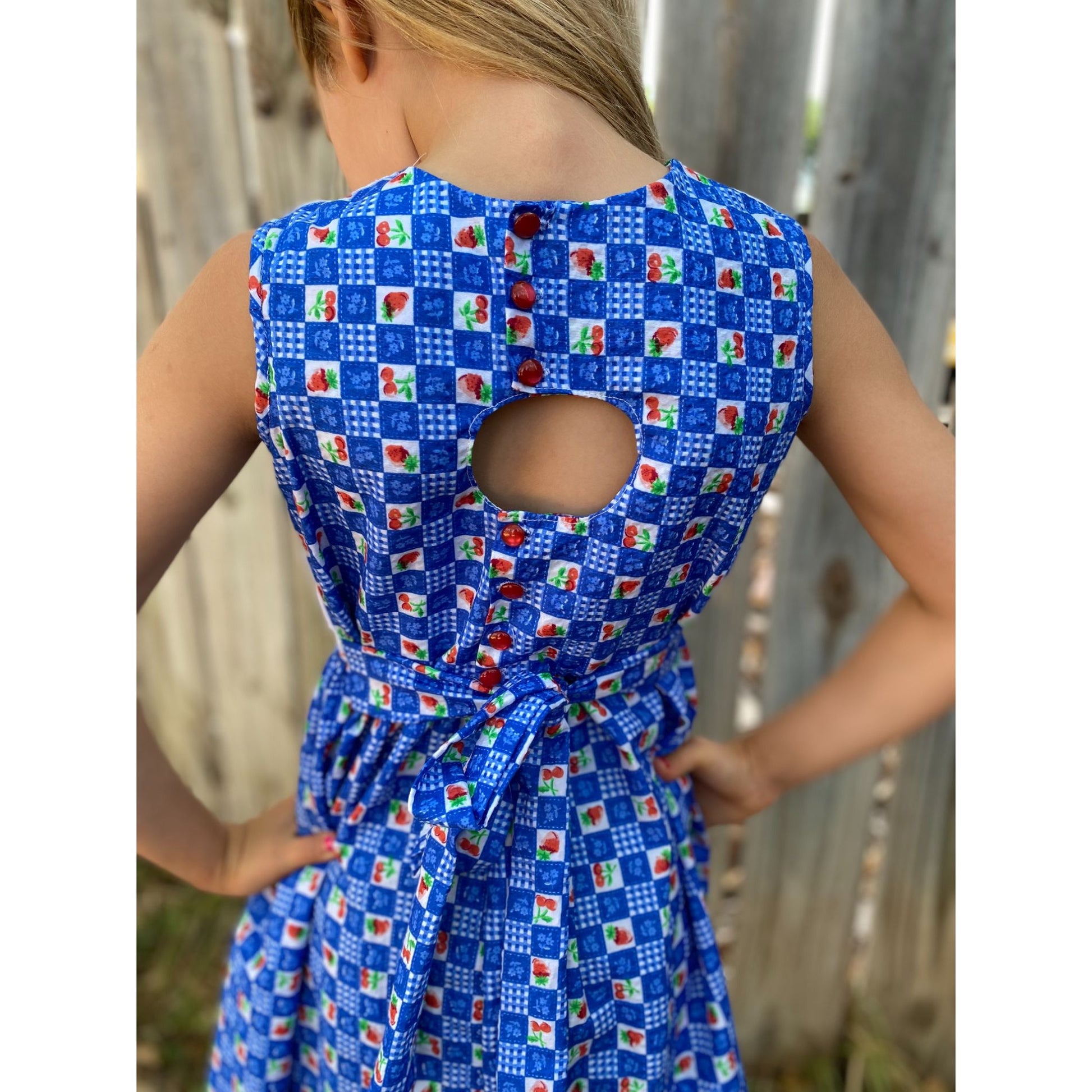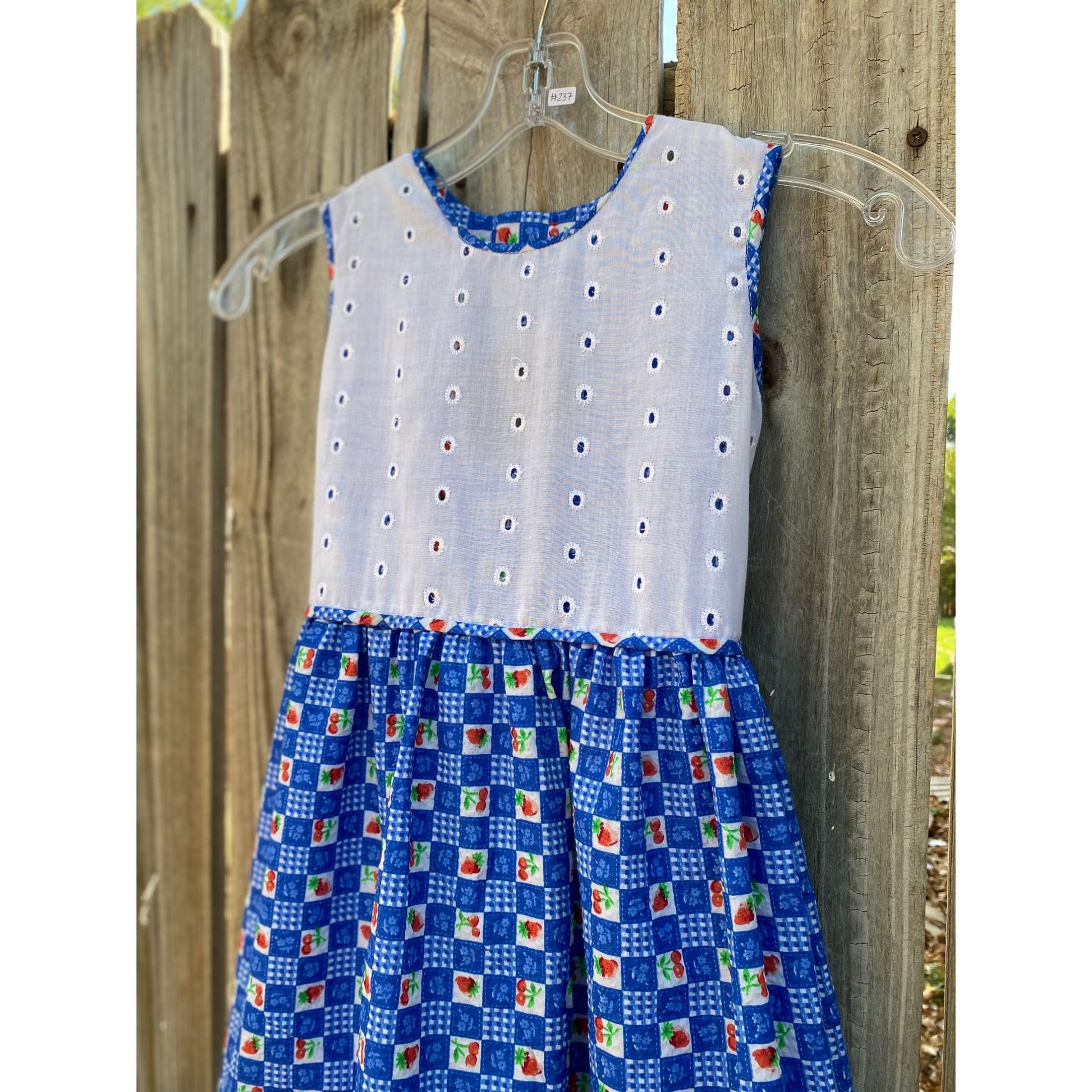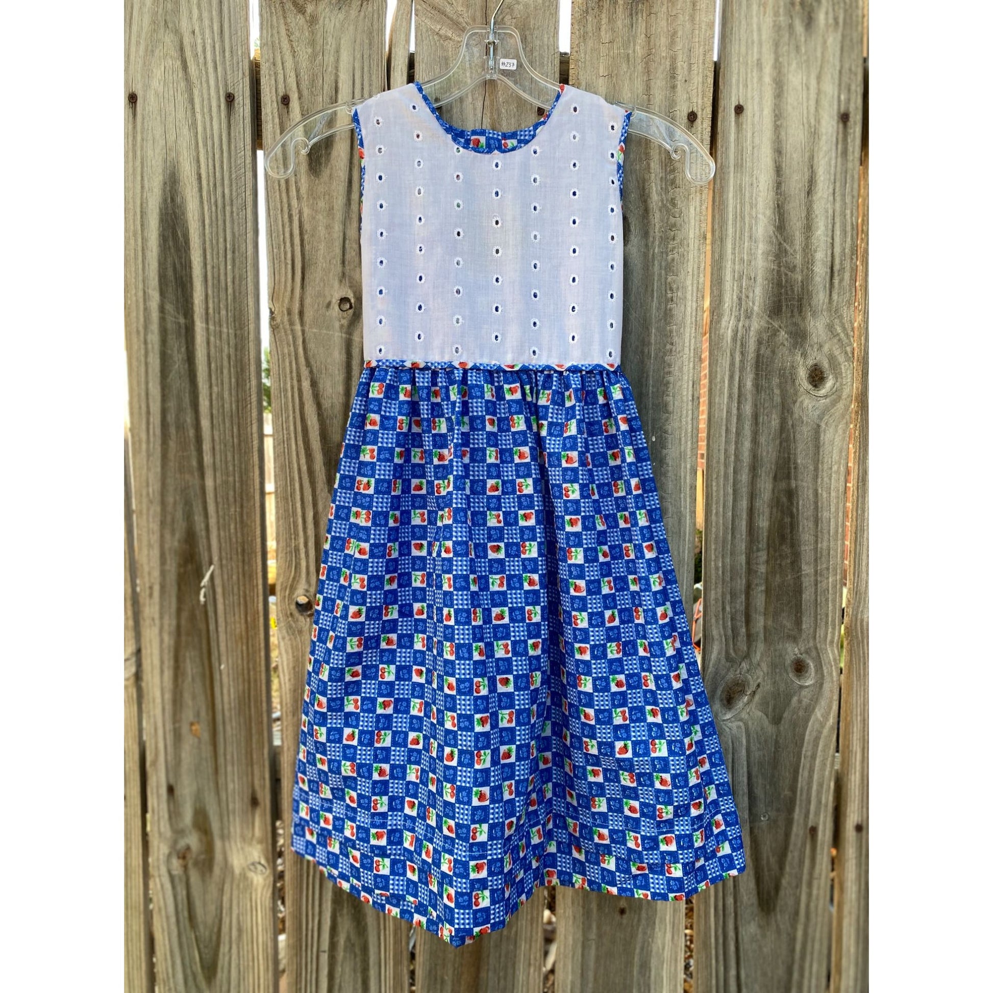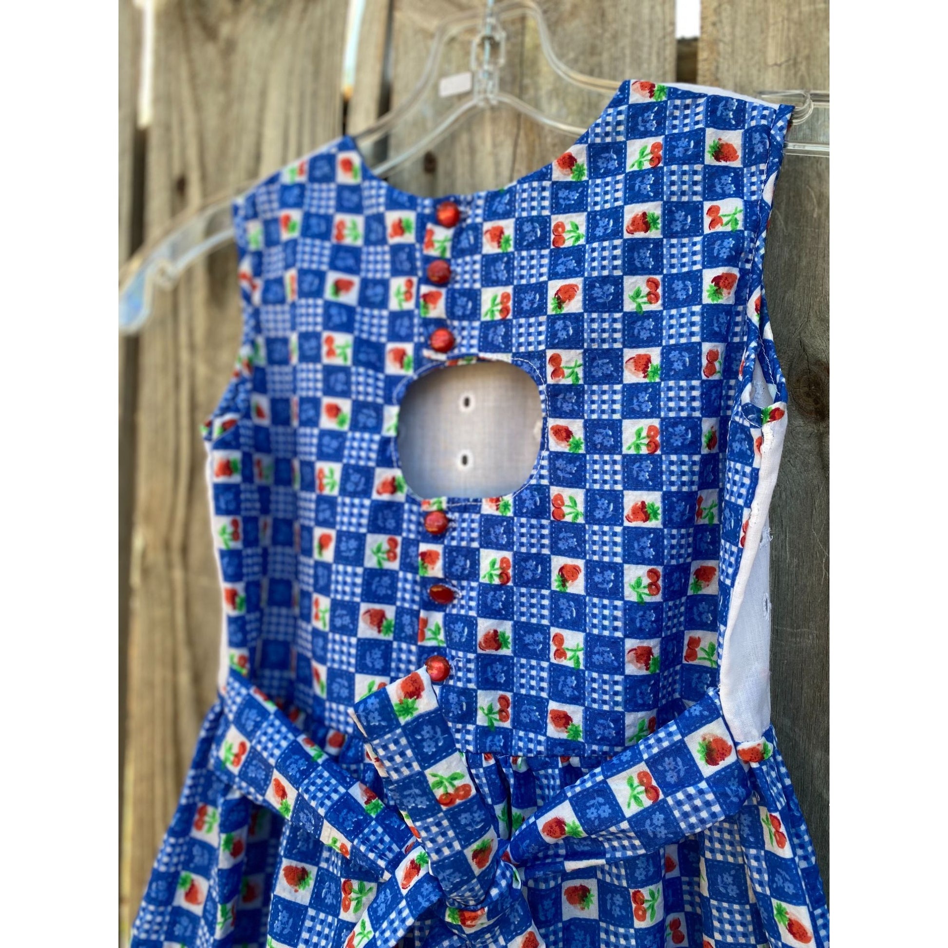 90's Vintage Handmade Girl's Blue Fruit Dress Size 7