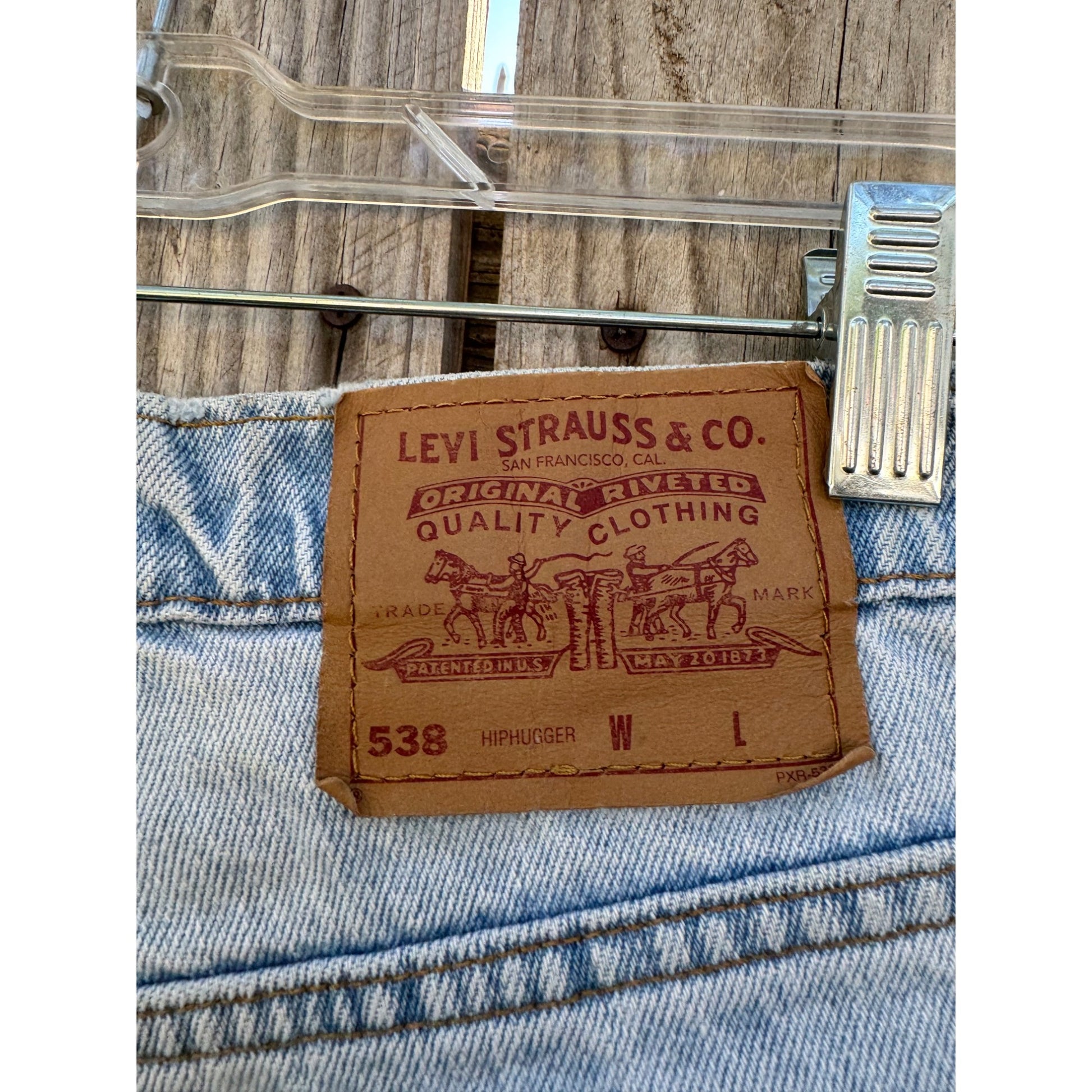 Vintage 90's Levi's 538 Hiphugger Light Wash Cut Off Raw Hem Denim Jean Shorts Size 29