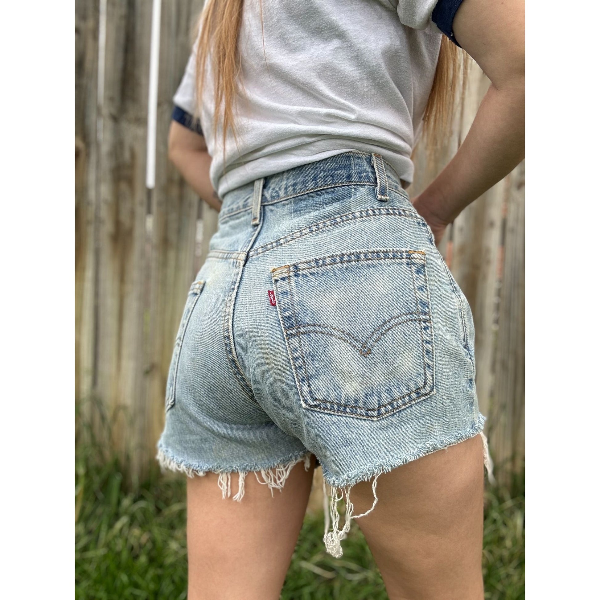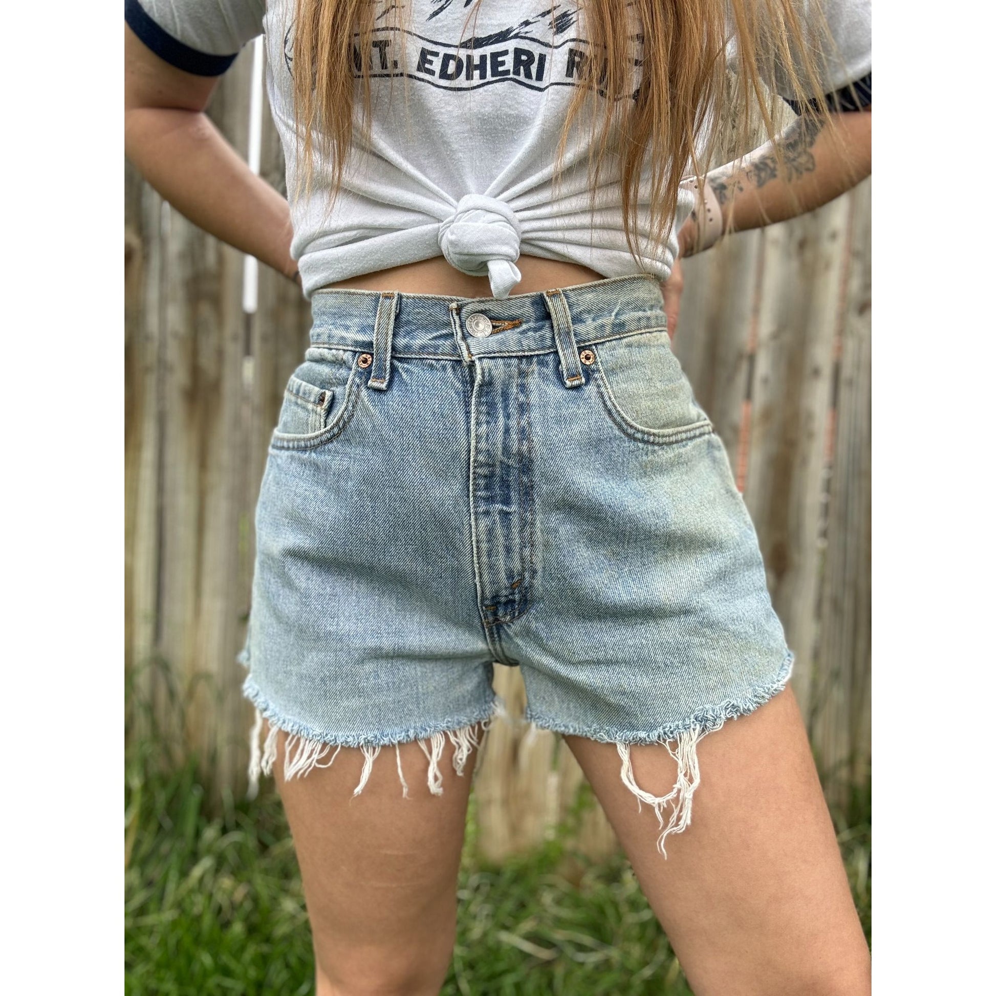 Vintage 90's Levi's Medium Wash Cut Off Raw Hem Denim Jean Shorts Waist 29"