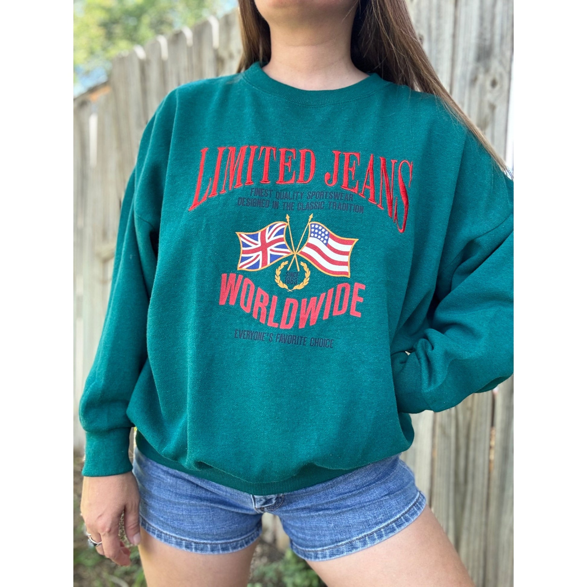Vintage 90's Limited Jeans Graphic Embroidered Crew Neck Sweatshirt Size XL