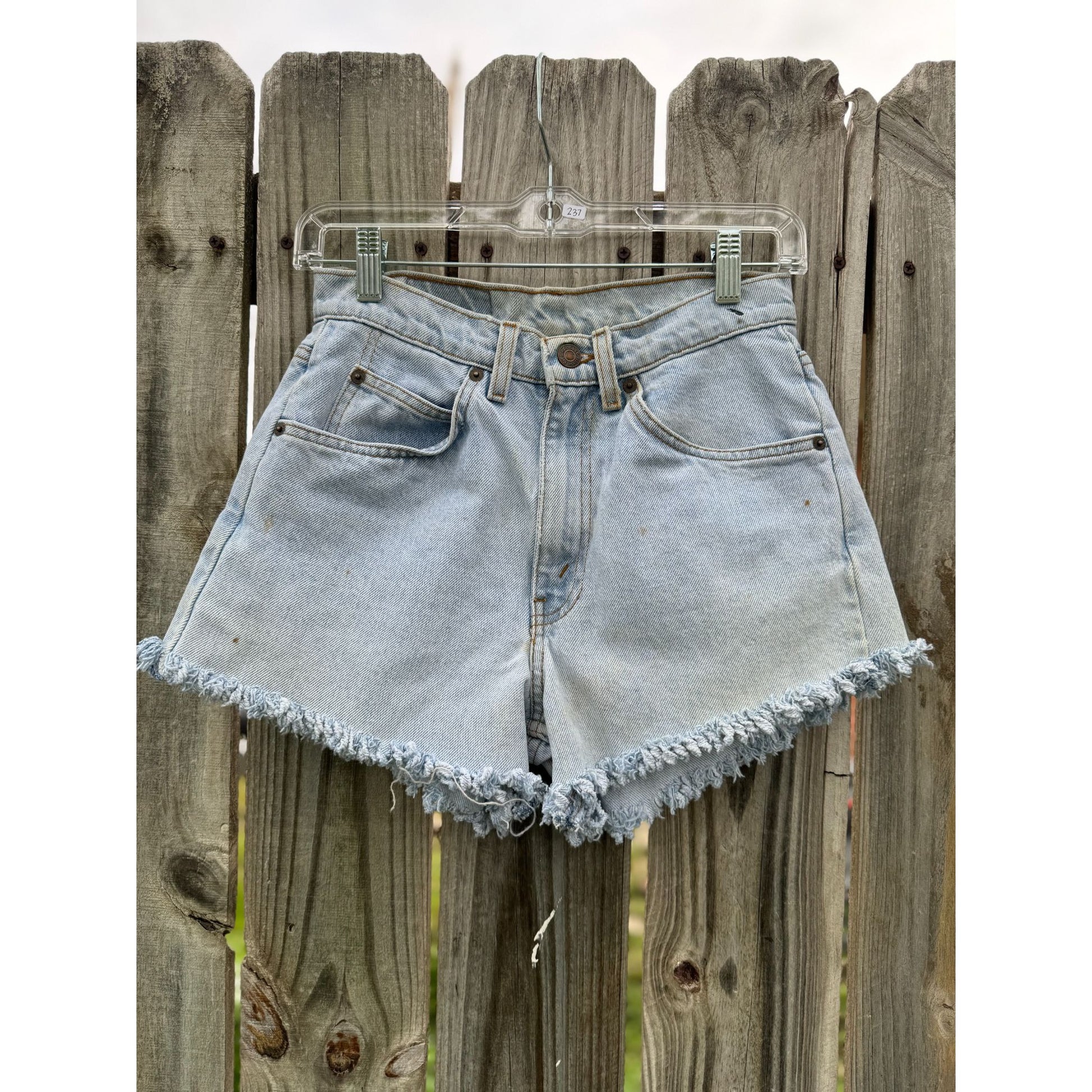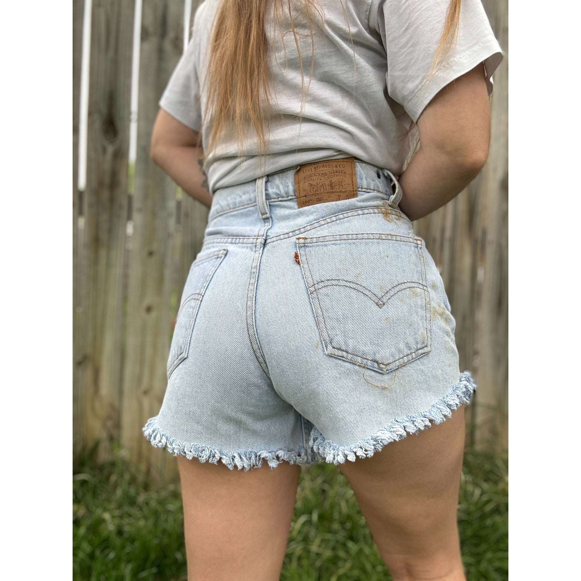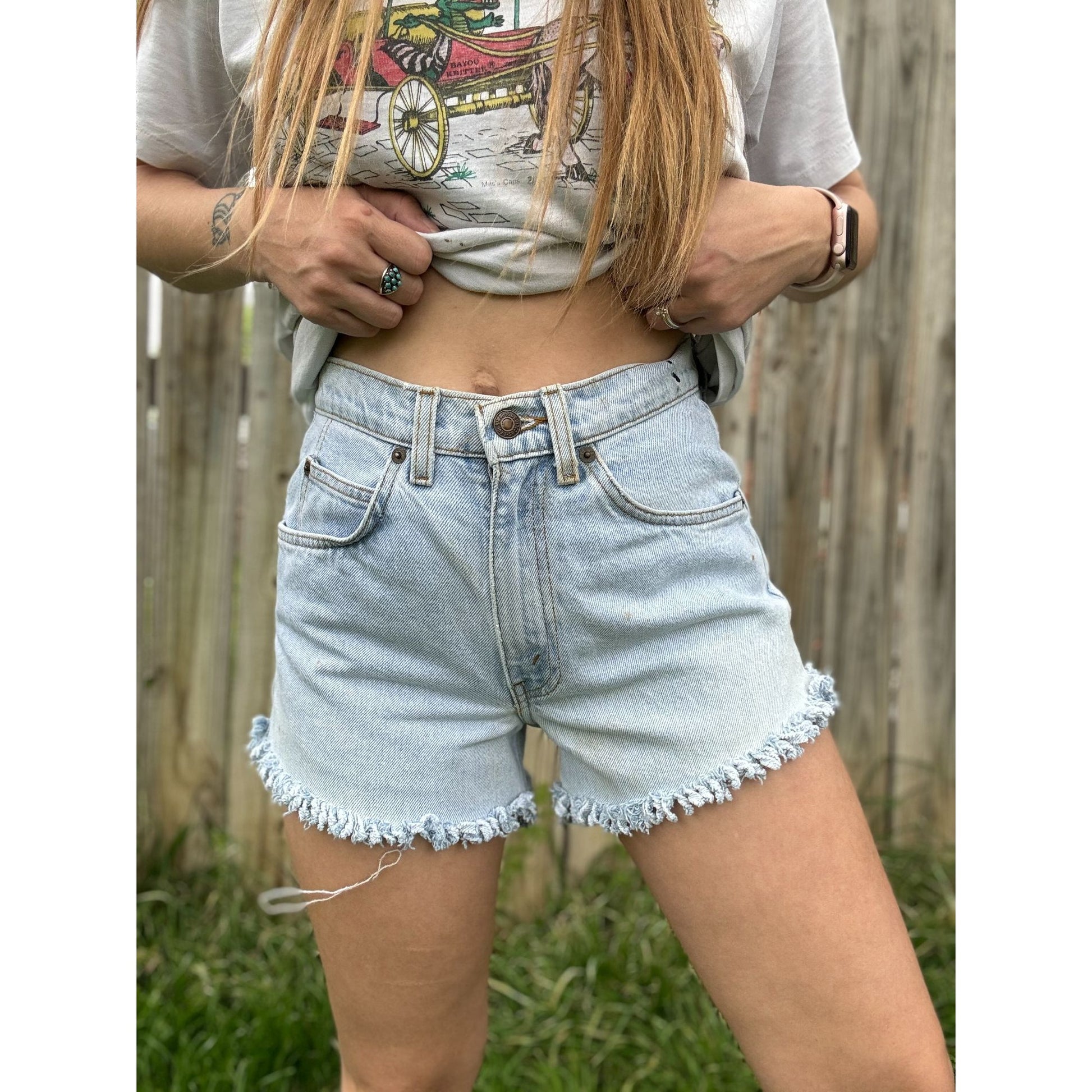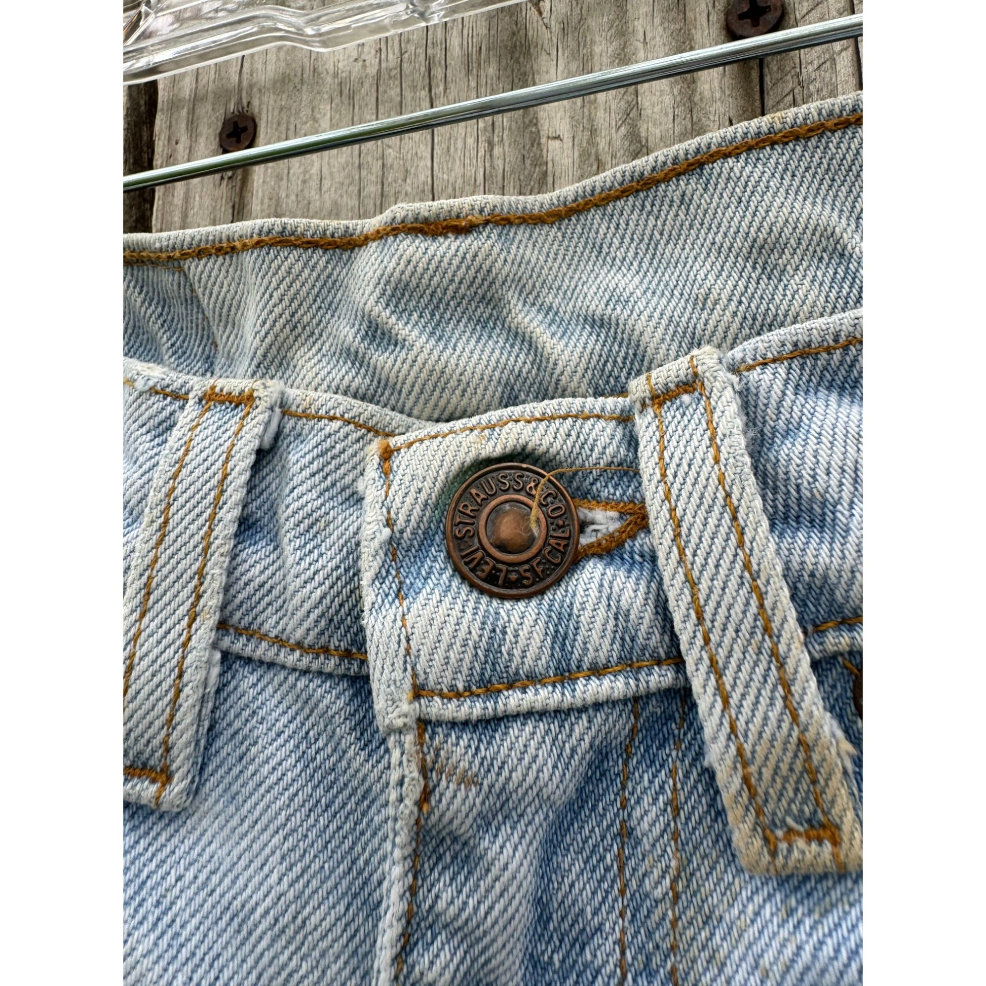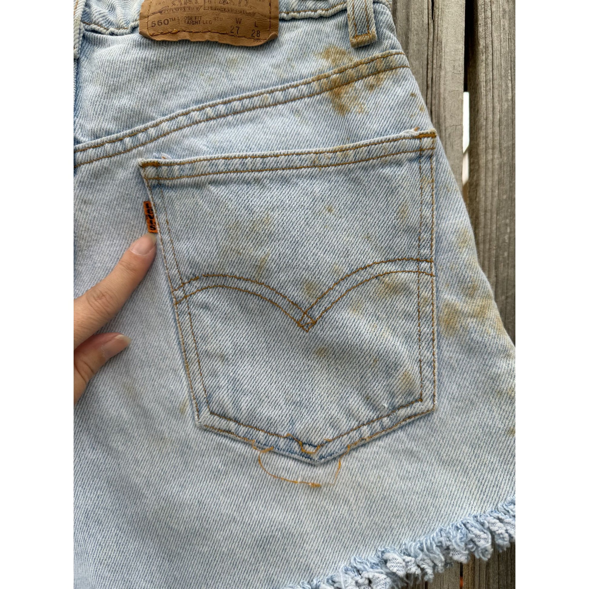 Vintage 94' Levi's 560 Loose Fit Orange Tab Light Wash Cut Off Raw Hem Denim Jean Shorts Size 27
