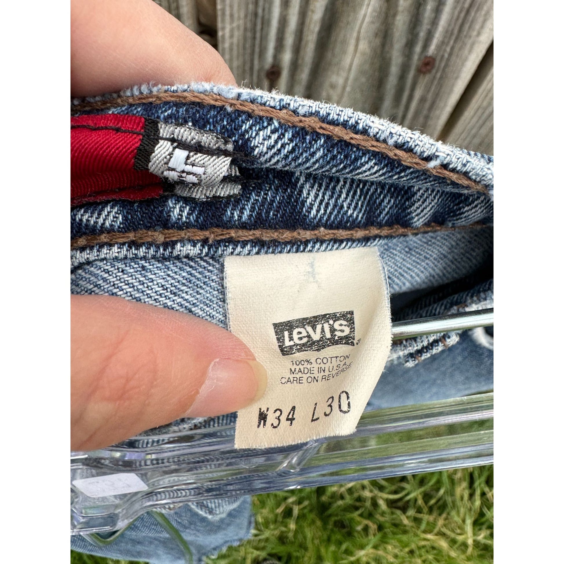 Vintage 97' Levi's silverTab Loose Fit Medium Wash Cut Off Raw Hem Denim Jean Shorts Size 34